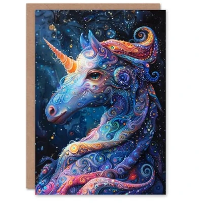 Artery8 Birthday Card Magical Luminous Unicorn Fantasy Art Kids For Son Daughter Girl Boy Happy