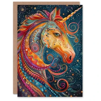 Artery8 Birthday Card Magical Unicorn Colourful Tribal Folk Art Pattern For Son Daughter Girl Boy Kids Happy