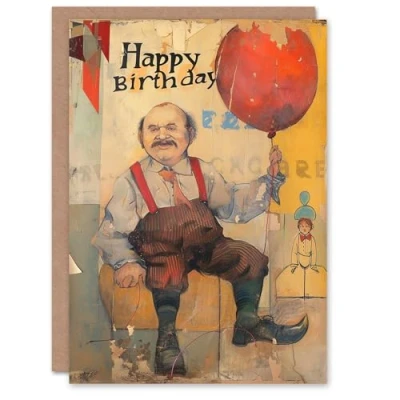 Artery8 Birthday Card Man with Balloon Carnival Circus Painting For Him Male Dad Brother Son Papa Grandad Greeting