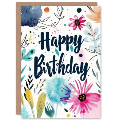 Artery8 Birthday Card Modern Boho Flowers Floral Watercolour For Her Gran Sister Niece Daughter Wife Woman Greeting