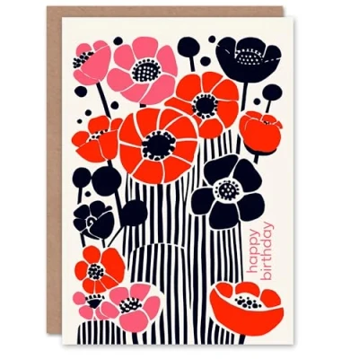 Artery8 Birthday Card Modern Poppy Anemone Flower Painting For Her Gran Sister Niece Daughter Wife Woman Greeting