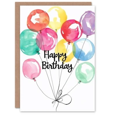 Artery8 Birthday Card Multicolour Watercolour Balloons Simple Fun For Him Her Man Woman Girl Boy Wife Husband Greeting