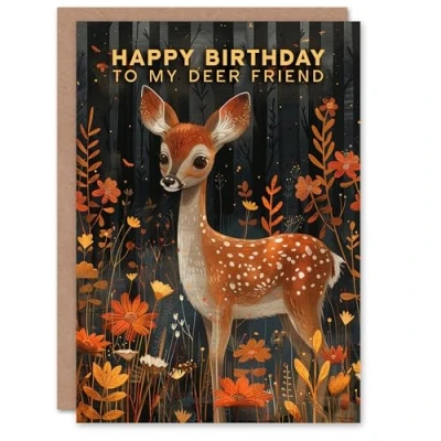 Artery8 Birthday Card My Deer Friend Pun Autumn Forest Fawn For Child Kids Son Daughter Greeting