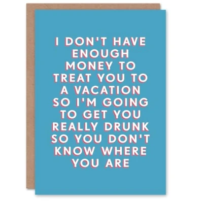 Artery8 Birthday Card No Vacation But Get You Drunk For Him Man Male Friend Greeting Fun Funny Humour Joke