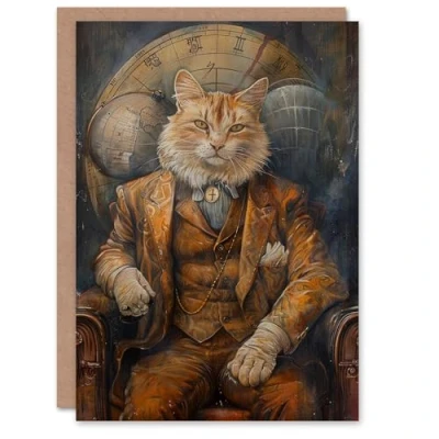 Artery8 Birthday Card Old Fashioned Cat Gent Armchair Steampunk For Him Man Male Dad Brother Son Papa Grandad Greeting