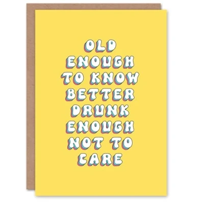 Artery8 Birthday Card Old Know Better Drunk Don't Care Fun Funny Happy Joke Humour Her Woman Sister Friend Girlfriend Greeting