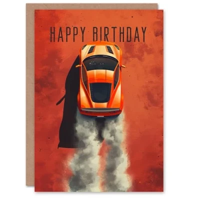 Artery8 Birthday Card Orange Sports Car Dirt Road Dusty Trail For Him Man Male Dad Brother Son Papa Grandad Greeting