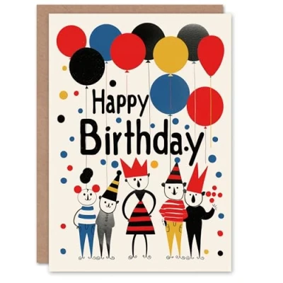 Artery8 Birthday Card People Balloons Party Fun Simple Shapes For Child Kids Son Daughter Greeting
