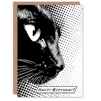 Artery8 Birthday Card Pop Art Cat Black and White Comic Animal Lover For Him Her Man Woman Girl Boy Wife Husband Greeting
