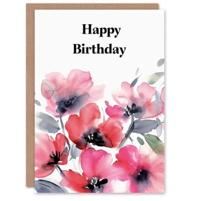 Artery8 Birthday Card Poppy Flower Bouquet Watercolour Painting For Her Gran Sister Niece Daughter Wife Woman Greeting