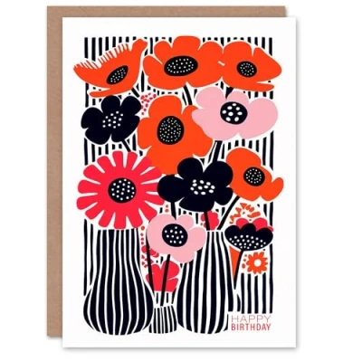 Artery8 Birthday Card Poppy Flower Vases Modern Abstract For Her Gran Sister Niece Daughter Wife Woman Greeting