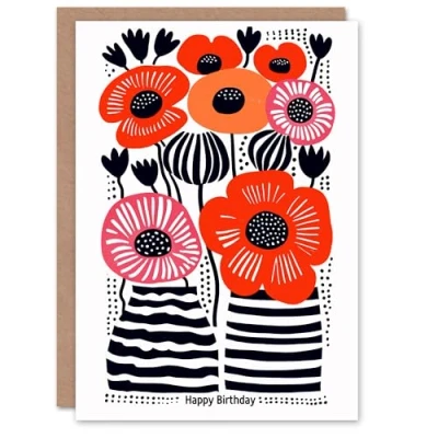 Artery8 Birthday Card Poppy Flowers in Vase Modern Folk Art For Her Gran Sister Niece Daughter Wife Woman Greeting
