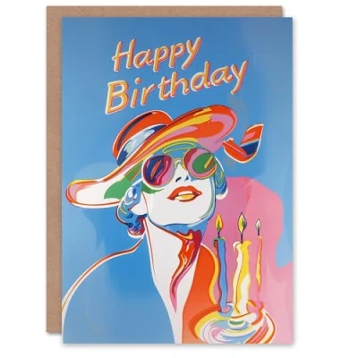 Artery8 Birthday Card Portrait with Candles Psychedelic Pop Art For Her Gran Sister Niece Daughter Wife Woman Greeting