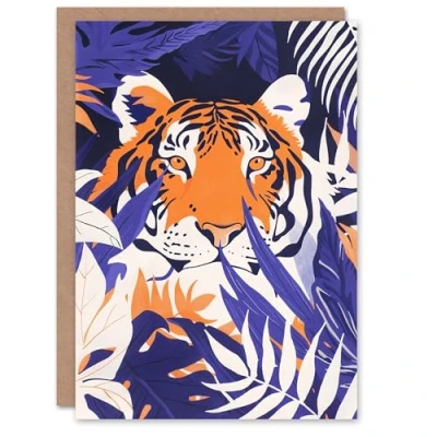 Artery8 Birthday Card Prowling Tiger Orange Purple Tropical Jungle Blank Arty Art All Occasion Greeting