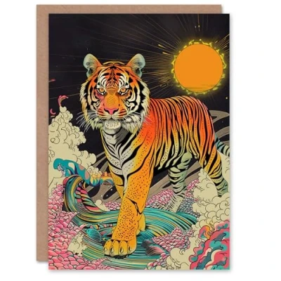 Artery8 Birthday Card Psychedelic Tiger Sun Mystic Trippy Blank Arty Art All Occasion Greeting