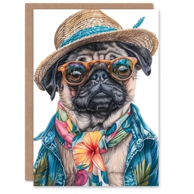 Artery8 Birthday Card Pug Dog Lover Hawaii Vacation Fun Portrait For Him Man Male Dad Brother Son Papa Grandad Greeting