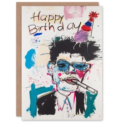 Artery8 Birthday Card Punk Man Artistic Drawing Colourful For Him Male Dad Brother Son Papa Grandad Greeting