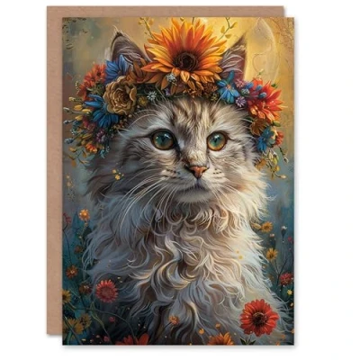 Artery8 Birthday Card Ragdoll Cat Lover Cute Kitty Flower Crown For Her Gran Sister Niece Daughter Wife Woman Greeting