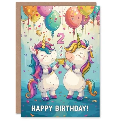 Artery8 Birthday Card Rainbow Unicorn Party Balloons Cartoon Cute 2nd 2 Year Old For Child Kids Son Daughter Greeting