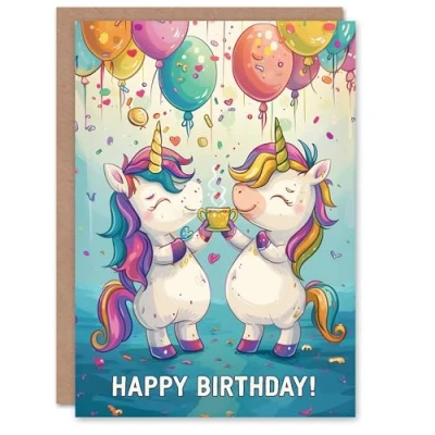 Artery8 Birthday Card Rainbow Unicorn Party Balloons Cartoon Cute For Child Kids Son Daughter Greeting