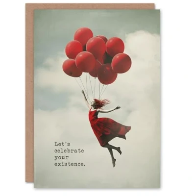 Artery8 Birthday Card Red Balloon Bundle Flight Lady Fun Surreal For Her Gran Sister Niece Daughter Wife Woman Greeting