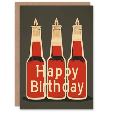 Artery8 Birthday Card Red Beer Bottle Candles Drawing For Him Man Male Dad Brother Son Papa Grandad Greeting