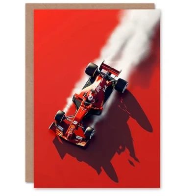 Artery8 Birthday Card Red Race Car Dust Trail Aerial View For Him Man Male Dad Brother Son Papa Grandad Greeting