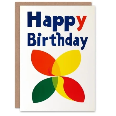 Artery8 Birthday Card Retro Colourful Simple Classic Dots Butterfly For Him Her Man Woman Girl Boy Wife Husband Greeting
