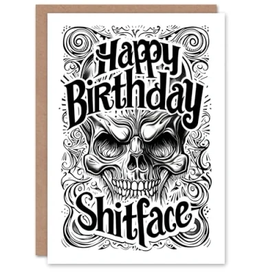 Artery8 Birthday Card Retro Tattoo Style Skull Rude Joke Sh*tface Bro For Him Man Male Brother Greeting
