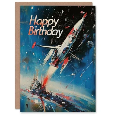 Artery8 Birthday Card Rocket Launch Space Abstract Painting For Him Man Male Dad Brother Son Papa Grandad Greeting