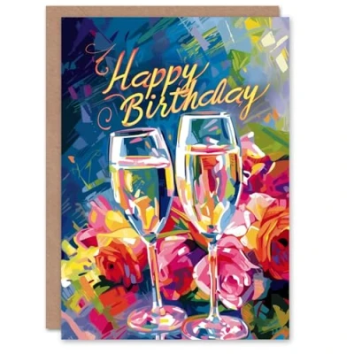 Artery8 Birthday Card Roses Bouquet and Champagne Glasses For Her Gran Sister Niece Daughter Wife Woman Greeting
