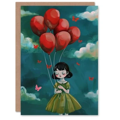 Artery8 Birthday Card Sad Girl Balloons in Clouds Butterflies For Her Gran Sister Niece Daughter Wife Woman Greeting
