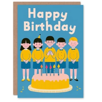 Artery8 Birthday Card School Children Party Cake Retro Style For Child Kids Son Daughter Greeting