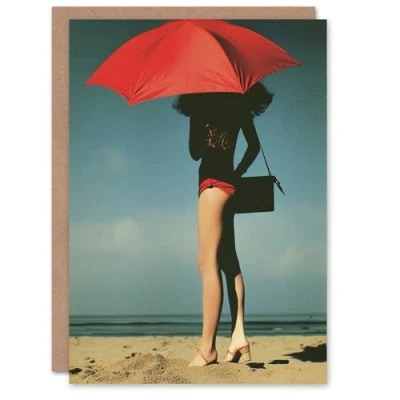 Artery8 Birthday Card Sexy Vintage Model Beach Umbrella Photo For Him Man Male Dad Brother Son Papa Grandad Greeting