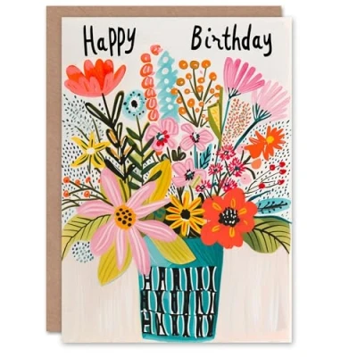 Artery8 Birthday Card Simple Flower Bouquet in Vase Painting For Her Gran Sister Niece Daughter Wife Woman Greeting