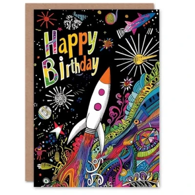 Artery8 Birthday Card Space Rocket Planets Astronaut Colourful Fun For Child Kids Son Daughter Greeting
