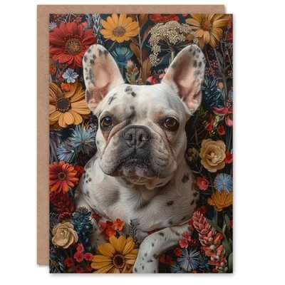 Artery8 Birthday Card Spotted French Bulldog in Autumn Wildflowers Animal Dog Lover For Him Her Man Woman Girl Boy Wife Husband Greeting