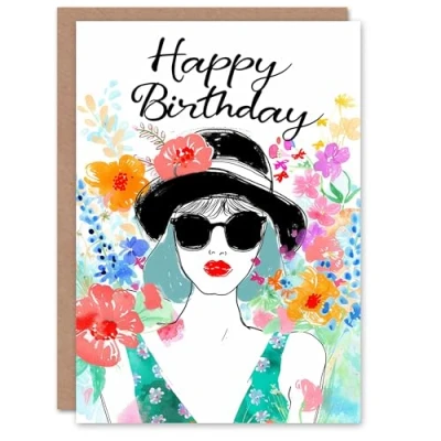 Artery8 Birthday Card Spring Floral Pattern Fashion Portrait For Her Gran Sister Niece Daughter Wife Woman Greeting