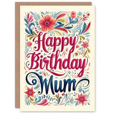 Artery8 Birthday Card Spring Flower Frame Design For Mum Mam Mother Mummy Greeting