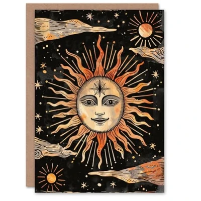 Artery8 Birthday Card Sun Stars Sky Tarot Style Design Triumph Blank Arty Art All Occasion Greeting