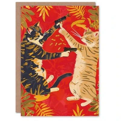 Artery8 Birthday Card Tabby Cats Fight Fun Quirky Design For Him Man Male Dad Brother Son Papa Grandad Greeting