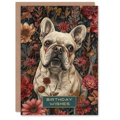 Artery8 Birthday Card Tan French Bulldog in Wildflower Garden Wishes For Him Her Man Woman Girl Boy Wife Husband Greeting