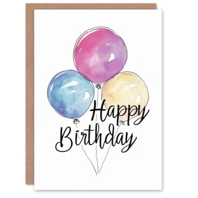 Artery8 Birthday Card Three Pastel Watercolour Balloons Simple Classic For Him Her Man Woman Girl Boy Wife Husband Greeting