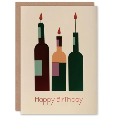 Artery8 Birthday Card Three Wine Bottles Candles Block Green Wino For Him Her Man Woman Girl Boy Wife Husband Greeting