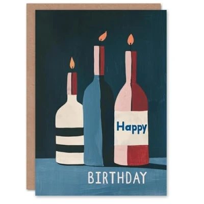 Artery8 Birthday Card Three Wine Bottles Candles Morandi Inspired Painting For Him Her Man Woman Girl Boy Wife Husband Greeting
