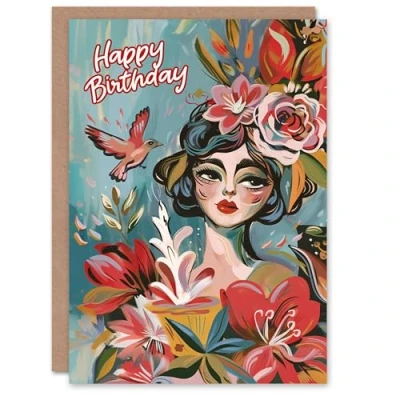 Artery8 Birthday Card Tropical Flowers Exotic Beauty Floral Portrait For Her Gran Sister Niece Daughter Wife Woman Greeting