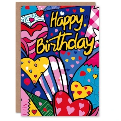 Artery8 Birthday Card Vibrant Pop Art Love Heart Patterns For Her Gran Sister Niece Daughter Wife Woman Greeting