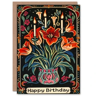 Artery8 Birthday Card Vintage Style Flowers Candles in Vase For Her Gran Sister Niece Daughter Wife Woman Greeting
