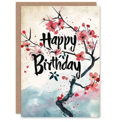 Artery8 Birthday Card Watercolour Cherry Blossom Flower Tree For Her Gran Sister Niece Daughter Wife Woman Greeting
