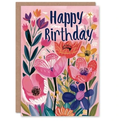 Artery8 Birthday Card Wildflowers Anemone Flowers Floral Painting For Her Gran Sister Niece Daughter Wife Woman Greeting